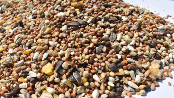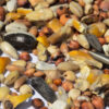 Skład: Sorgo czerwone 20%, pszenica extra 12%, proso żółte 10%, sorgo białe (dari) 8%, kukurydza ćwiartki 8%. jęczmień obłuszczony 6%, groszek ptasi zielony 5%, wyka czarna 5%, peluszka drobna arvika 5%, krokosz barwierski (kardi) 4%, gryka zwyczajna 3%, peluszka ptasia 2,5%, owies nagi (owsik) 2,5%, proso czerwone 2,5%, ryż biały 2%, kukurydza popcorn 2%, nasiona rzepaku 1,5%groszek ptasi żółty 1%