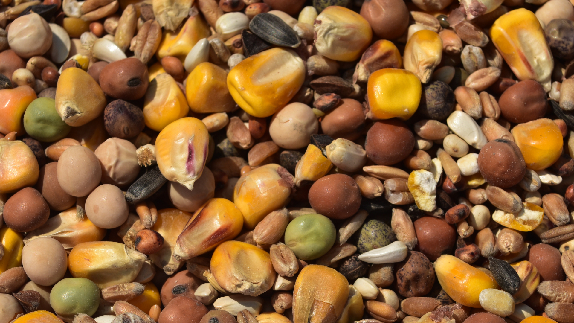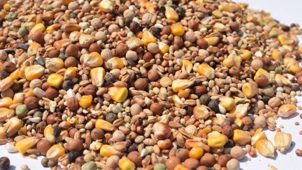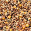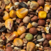 Kukurydza żółta 20%, pszenica extra 15%, sorgo czerwone 12%, groch żółty 10%, jęczmień obłuszczony (pęczak) 6%, kukurydza ptasia drobna 5%, groch zielony 5%, peluszka czerwona 5%, sorgo białe (dari) 4%, krokosz barwierski (kardi) 4%, kukurydza bordo 2,5%, proso żółte 2,5%, owies obłuszczony 2%, wyka czarna 2%, gryka zwyczajna 2%, słonecznik czarny drobny 1%, słonecznik paskowany iryga 1%, ryż paddy 1%